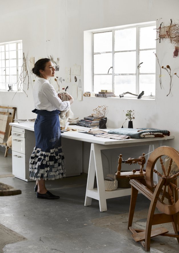 One result of this multifaceted approach to what she creates is that no two days of Frances’s working life are the same. She spends time finding her inspiration in the Karoo landscape around her, formulating her designs, and collaborating with clients. “All our work is made to order, so I have a very close relationship with clients,” she says. But she is also occupied with promoting the Frances V.H brand, sharing its story with the world, and of course, “there is always something happening in the studio, from dyeing yarns, to spinning, weaving up new orders or playing around with different finishes.” And as this is a working farm, there’s plenty of everyday administration, logistics, packaging of orders, and fixing of equipment forming an inevitable part of running a business such as hers too.